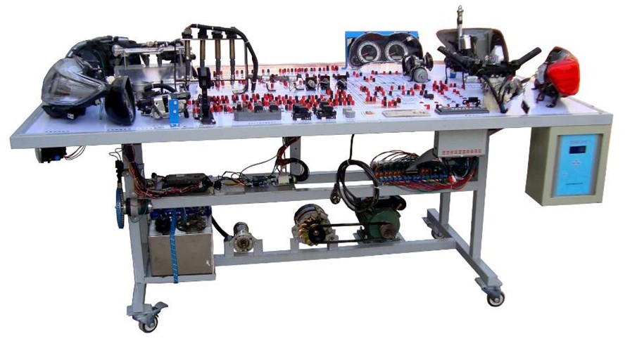 汽車電氣設(shè)備實訓(xùn)室。汽車電器設(shè)備實訓(xùn)室包含有汽車燈光系統(tǒng)、車載網(wǎng)絡(luò)系統(tǒng)、全車電器系統(tǒng)、汽車啟動系統(tǒng)、汽車空調(diào)系統(tǒng)、全車線路試驗臺、等實訓(xùn)教學(xué)設(shè)備。該實訓(xùn)室可以承擔(dān)《汽車構(gòu)造》、《汽車電器設(shè)備》、《汽車電控系統(tǒng)》、《汽車檢測與診斷》等課程的實踐教學(xué)任務(wù)。可以用于研究、分析全車電器系統(tǒng)、燈光系統(tǒng)、儀表系統(tǒng)等電器設(shè)備的電路及功能。利用這些系統(tǒng)進行實踐教學(xué),使學(xué)生熟悉汽車電器的結(jié)構(gòu)和工作原理,掌握各個系統(tǒng)的基本組成電路,掌握主要電路的檢測方法和系統(tǒng)的故障特征,從而具有一定的檢測和調(diào)校能力。