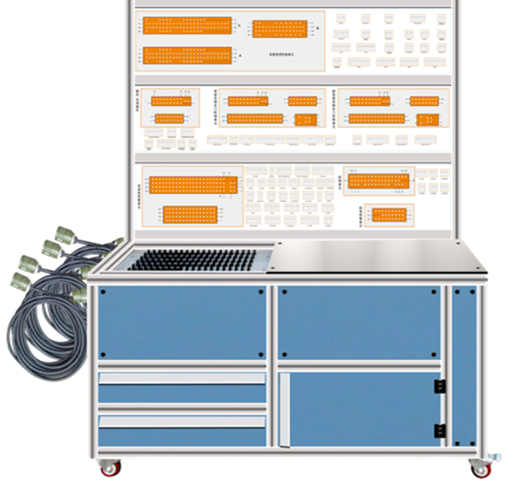 2、通過裝有與原車插頭配套插接器的線束,連接故障設置終端,故障設置終端通過專用線束連接檢測臺,實現(xiàn)整車各系統(tǒng)電路教學、實訓考核的多功能教學設備;
