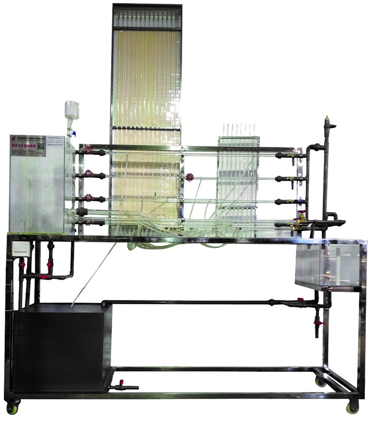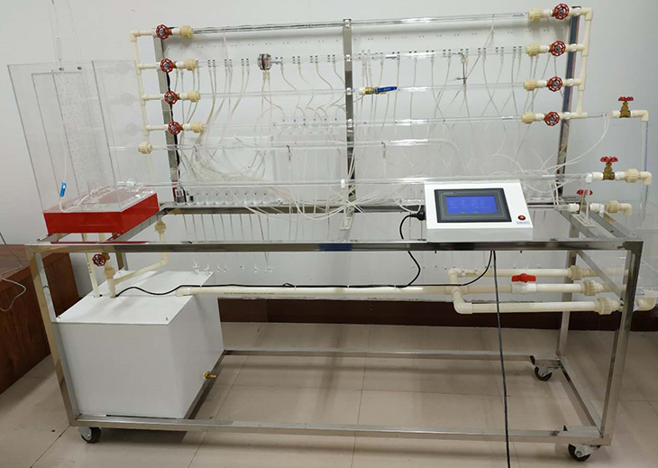 移動(dòng)式不銹鋼實(shí)驗(yàn)臺(tái)、儲(chǔ)水箱;雷諾測(cè)試管;伯努利測(cè)試管;沿程阻力系數(shù)測(cè)試管;突擴(kuò)、突縮測(cè)試管;閥門(mén)局部阻力系數(shù)測(cè)試管;孔板流量計(jì)測(cè)試管;文丘里流量計(jì)測(cè)試管;和皮托管測(cè)試管;測(cè)壓板直接顯示總水頭線(xiàn)和測(cè)壓管水頭線(xiàn);壓力傳感器24套、流量傳感器4套、溫度傳感器1套、觸摸屏、測(cè)壓板。