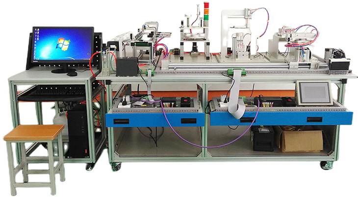 光機(jī)電氣一體化控制實(shí)訓(xùn)平臺(tái)由由鋁合金導(dǎo)軌式實(shí)訓(xùn)臺(tái)、典型的機(jī)電一體化設(shè)備的機(jī)械部件、PLC模塊、變頻器模塊、按鈕模塊、電源模塊、模擬生產(chǎn)設(shè)備實(shí)訓(xùn)模塊、接線端子排和各種傳感器、計(jì)算機(jī)等組成。整體結(jié)構(gòu)采用開放式和拆裝式,實(shí)訓(xùn)裝置用于機(jī)械部件組裝,可根據(jù)現(xiàn)有的機(jī)械部件組裝生產(chǎn)設(shè)備,也可添加機(jī)械部件組裝其他生產(chǎn)設(shè)備,使整個(gè)裝置能夠靈活的按教學(xué)或競賽要求組裝具有生產(chǎn)功能的機(jī)電一體化設(shè)備。模塊采用標(biāo)準(zhǔn)結(jié)構(gòu)和抽屜式模塊放置架,互換性強(qiáng);按具有生產(chǎn)性功能和整合學(xué)習(xí)功能的原則確定模塊內(nèi)容,使教學(xué)或競賽時(shí)可方便的選擇需要的模塊。設(shè)備需完全符合電工電子全國職業(yè)技能大賽所要求,同時(shí)還要求具有可拓展功能,可以組成更加大型的生產(chǎn)模擬系統(tǒng),以配合各個(gè)用戶學(xué)校不同層次,不同專業(yè)的教學(xué)及培訓(xùn)要求。