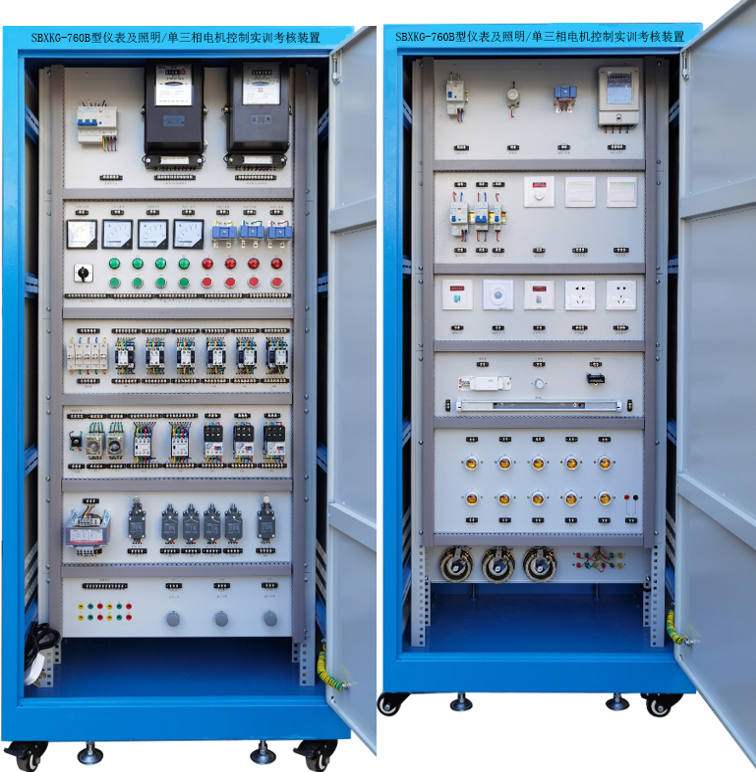 柜式電工電拖實訓(xùn)設(shè)備,電工電器實訓(xùn)考核柜,電工電拖實訓(xùn)考核裝置是按照勞動社會保障部頒發(fā)的工人技術(shù)等級標準和職業(yè)技能實驗內(nèi)容要求教學(xué)而設(shè)計,電工實訓(xùn)考核柜以標準的電氣控制柜為主,利用柜體的雙面空間,布置電器及配套實驗器材,能完成電工考核鑒定中的電工電器控制與照明電路的實操項目,堅持理論與實際的原則,突出技能訓(xùn)練,提高了實習(xí)教學(xué)質(zhì)量,讓學(xué)員很快掌握實際操作技能知識與實踐接線技巧,使培訓(xùn)教學(xué)走向一個新領(lǐng)域。
