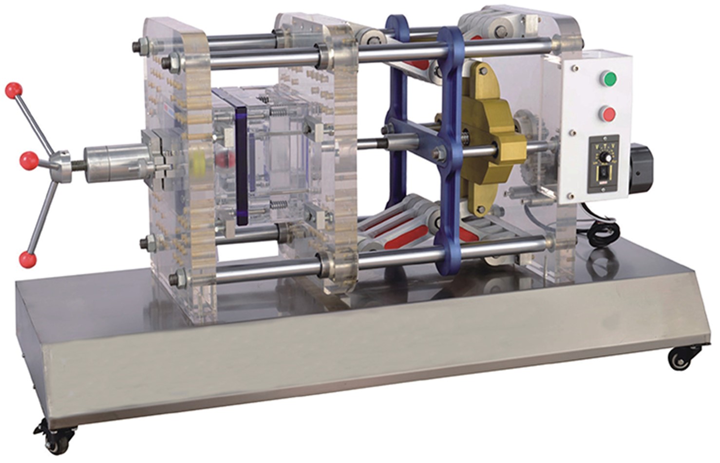 透明注塑機模型,注塑機教學模型,透明液壓注塑機演示模型,模具拆裝實訓室-主要服務于模具設計與制造專業(yè)的核心課程《沖壓模具設計與制造》、《塑料模具設計與制造》的實訓教學,通過模具的拆裝,學生可以了解各類沖壓模具、塑料模具的工作原理,常用的塑料成型加工方法,掌握注塑成型加工的基本操作方法以及安全操作注意事項,開拓學生視野,激發(fā)學生學習模具的興趣,提高教學效果。