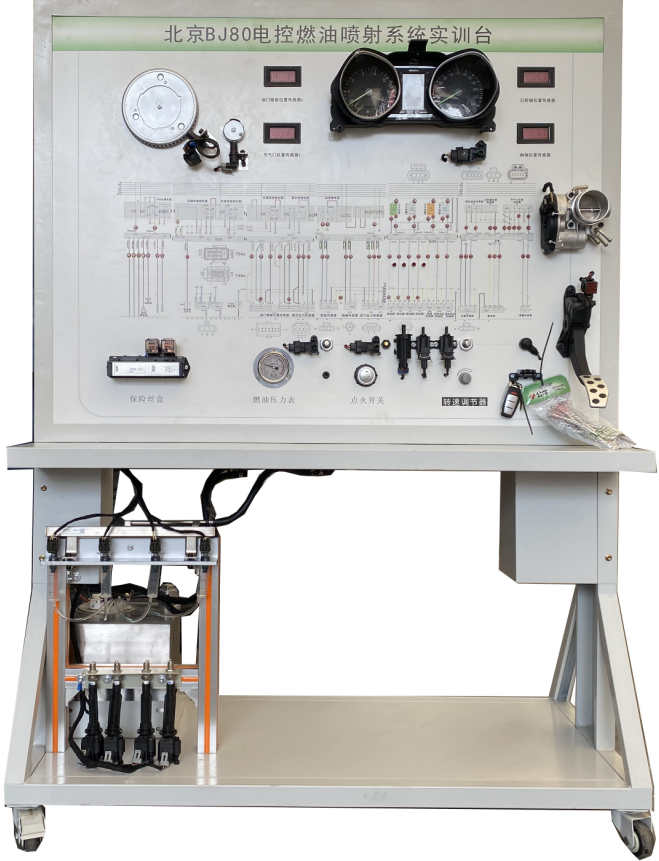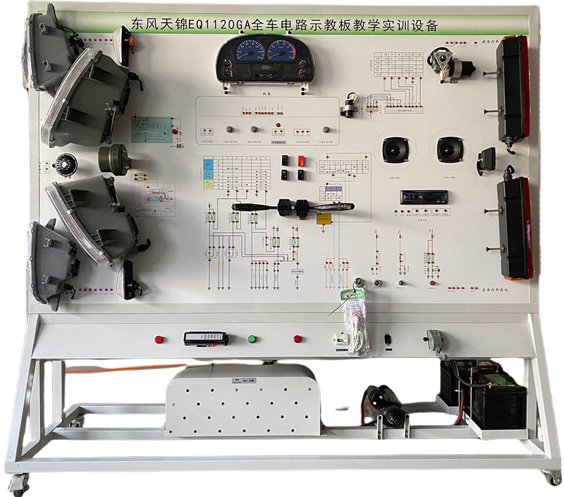 汽車示教板,汽車燈光儀表示教板,汽車電器教板適用于各類院校汽車專業(yè)學(xué)員實操技能的培訓(xùn)考核,汽車教學(xué)示教板用真實的汽車零部件,充分展示車門控制系統(tǒng)組成結(jié)構(gòu),電動窗控制系統(tǒng)、電動后視鏡系統(tǒng)、中控門鎖系統(tǒng)、防盜系統(tǒng)等,可對系統(tǒng)進行結(jié)構(gòu)和控制系統(tǒng)的認識實訓(xùn),汽車示教板上繪有完整的車門控制系統(tǒng)電路圖,可直觀學(xué)習(xí)系統(tǒng)的工作原理,汽車示教板上安裝有與部件一一對應(yīng)的檢測端子,可使用檢測儀器實時檢測工況,測量出電壓、阻值、電流、頻率等信號參數(shù)。