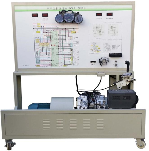 該設備采用翻新本田飛度電控無級變速器總成為基礎,用可調速三相異步電動機做動力源,可對無級變速器進行檔位顯示、空檔起動、前進檔及倒檔運行等工況實踐操作。真實展示無級變速器組成結構和工作過程;