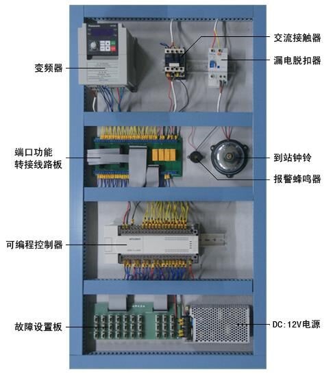 電梯的電氣控制系統(tǒng)采用PLC和交流變頻調(diào)速控制,其硬件結(jié)構(gòu)的組成及功能與實(shí)際電梯完全一樣。具有自動(dòng)平層、自動(dòng)關(guān)門、順向響應(yīng)轎內(nèi)外呼梯信號(hào)、直駛、電梯安全運(yùn)行保護(hù)以及電梯急停、慢上、慢下、照明、風(fēng)扇等功能,性能可靠、運(yùn)行平穩(wěn)、操作簡單、能耗低,特別適合于教學(xué)。此外,透明仿真教學(xué)電梯的軟硬件均采用開放式結(jié)構(gòu),因此,院校也可以利用此套裝置進(jìn)行二次開發(fā)研究。