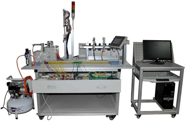 本設(shè)備主要包括實訓臺架、典型的機電一體化設(shè)備的機械部件、PLC模塊、變頻器模塊、按鈕模塊、電源模塊、模擬生產(chǎn)設(shè)備實訓模塊、接線端子排和各種傳感器等組成。整體結(jié)構(gòu)采用開放式和拆裝式,實訓裝置用于機械部件組裝,可根據(jù)現(xiàn)有的機械部件組裝生產(chǎn)設(shè)備,也可添加機械部件組裝其他生產(chǎn)設(shè)備,使整個裝置能夠靈活的按教學或競賽要求組裝具有生產(chǎn)功能的機電一體化設(shè)備。