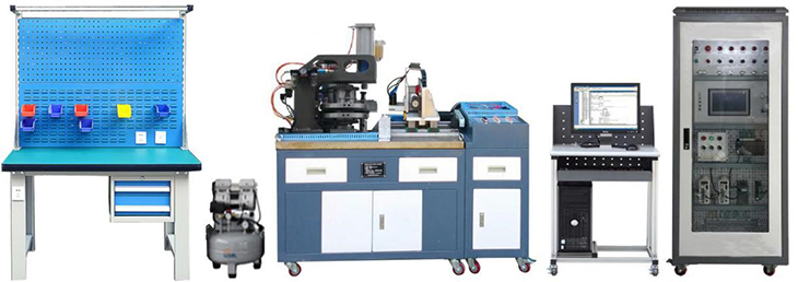 1.實訓(xùn)臺:采用鐵質(zhì)雙層亞光密紋噴塑結(jié)構(gòu),包括控制區(qū)域和機械裝調(diào)區(qū)域兩部分?刂茀^(qū)域主要由控制面板、電源轉(zhuǎn)換接口、控制按鈕等組成;機械裝調(diào)區(qū)域采用鑄件操作臺面,學(xué)生可在上面安裝和調(diào)整各種機械機構(gòu)。