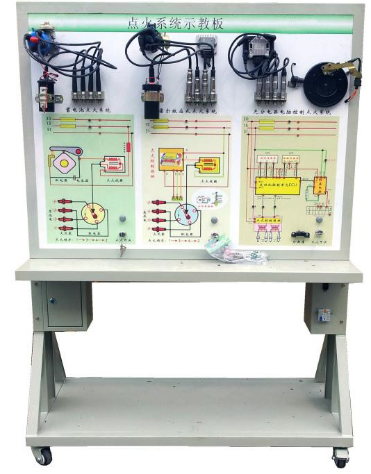 汽油發(fā)動(dòng)機(jī)點(diǎn)火系統(tǒng)保養(yǎng)模塊教具架該設(shè)備采用全新 三種典型(即:觸點(diǎn)式點(diǎn)火系統(tǒng)、霍爾式電子點(diǎn)火系統(tǒng)、無(wú)分電器分組點(diǎn)火系統(tǒng))的發(fā)動(dòng)機(jī)點(diǎn)火系統(tǒng)的真實(shí)部件,充分展示發(fā)動(dòng)機(jī)點(diǎn)火系統(tǒng)的組成結(jié)構(gòu)和工作過(guò)程。