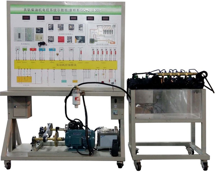 1.真實可運行的共軌柴油發(fā)動機燃油噴射系統(tǒng),充分展示燃油噴射系統(tǒng)的組成結(jié)構(gòu)和工作過程。電機驅(qū)動曲軸位置信號輪,可演示電子燃油噴射工作情況。