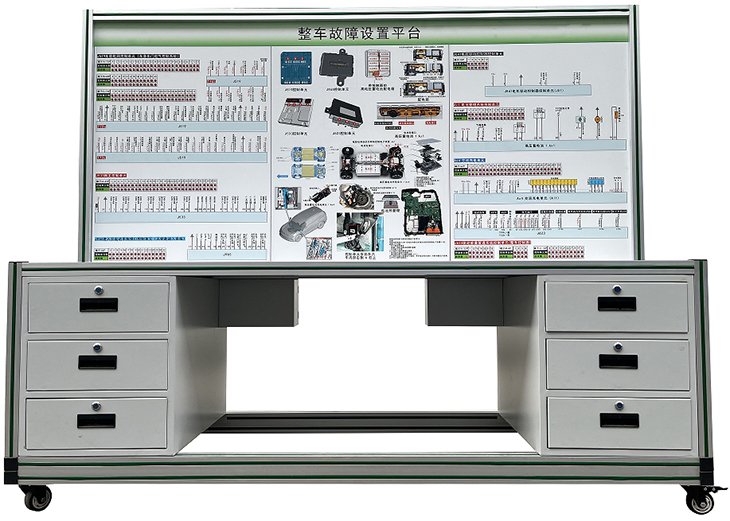 8.安裝故障模擬系統(tǒng),能實(shí)現(xiàn)低壓電路系統(tǒng)故障設(shè)置及診斷排除,進(jìn)行原車配套的檢測與維修。檢測平臺便于教師設(shè)故和學(xué)生實(shí)時在線信號測量,可根據(jù)教學(xué)實(shí)際需求選用,檢測故障點(diǎn)大于200路,可以設(shè)置斷路、短路、虛接等故障;