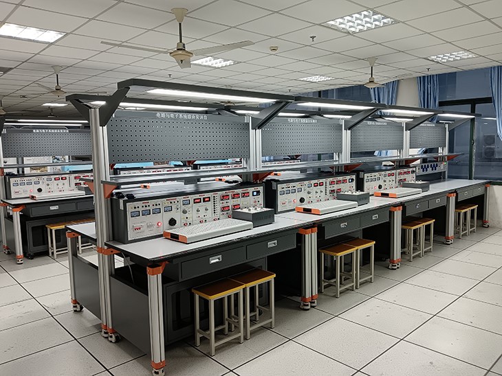 模擬電路、數(shù)字電路、電路基礎實驗臺、模擬電子技術實驗平臺面向院校工科專業(yè)開設模擬電子技術等實驗實訓教學。通過本實驗室的實驗教學,使學生鞏固模擬電子技術的基本理論和基本知識,掌握常用實驗儀器設備的使用方法,具備調試電路參數(shù)、排除電路故障和分析實驗結果的能力,具備根據(jù)設計要求提出設計方案,并加以組裝、調試與測試的能力,為今后專業(yè)課程的學習奠定良好的基礎。