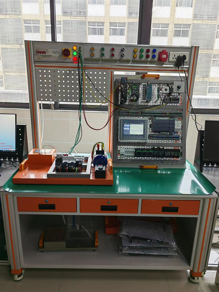 PLC與變頻控制實(shí)訓(xùn)室設(shè)備主要面向PLC系統(tǒng)設(shè)計(jì)師崗位,培養(yǎng)學(xué)生PLC基本編程、PLC小型控制系統(tǒng)的設(shè)計(jì)、變頻器使用與調(diào)試等能力。PLC與變頻控制實(shí)訓(xùn)室可進(jìn)行PLC操作技能的訓(xùn)練,PLC基本指令、步進(jìn)指令、功能指令編程訓(xùn)練,PLC控制系統(tǒng)的程序編制和調(diào)試,PLC應(yīng)用項(xiàng)目訓(xùn)練及PLC工程項(xiàng)目開(kāi)發(fā),變頻器實(shí)訓(xùn)及項(xiàng)目開(kāi)發(fā)研究。是自動(dòng)化類專業(yè)、機(jī)電一體化專業(yè)和機(jī)器人專業(yè)《電氣控制與PLC技術(shù)應(yīng)用》、《PLC技術(shù)與實(shí)踐》、《變頻與伺服控制技術(shù)》等課程開(kāi)展教學(xué)做一體化教學(xué)的主要場(chǎng)所。