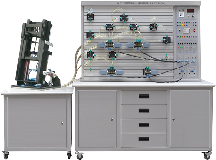 液壓與氣動(dòng)技術(shù)實(shí)驗(yàn)室設(shè)備、透明液壓實(shí)驗(yàn)臺(tái)、氣動(dòng)實(shí)驗(yàn)臺(tái)、液壓元件拆裝實(shí)訓(xùn)臺(tái)、透明液壓傳動(dòng)演示實(shí)驗(yàn)臺(tái)、液壓綜合測(cè)試實(shí)驗(yàn)臺(tái)、智能液壓綜合實(shí)驗(yàn)臺(tái)、機(jī)電液綜合實(shí)驗(yàn)臺(tái)、雙面氣動(dòng)傳動(dòng)實(shí)驗(yàn)臺(tái)、液壓氣動(dòng)元件陳列柜、液壓挖掘機(jī)實(shí)驗(yàn)臺(tái)、液壓起重機(jī)實(shí)驗(yàn)臺(tái)、液壓裝載機(jī)實(shí)驗(yàn)臺(tái)、透明液壓推土機(jī)實(shí)訓(xùn)臺(tái)、液壓叉車控制教學(xué)實(shí)驗(yàn)臺(tái)主要承擔(dān)機(jī)電類相關(guān)專業(yè)《液壓與氣動(dòng)技術(shù)》課程的專業(yè)實(shí)驗(yàn)任務(wù)。能提供包括液壓泵和控制元件結(jié)構(gòu)拆裝與分析實(shí)驗(yàn)、系統(tǒng)回路控制實(shí)驗(yàn)、系統(tǒng)性能實(shí)驗(yàn)和氣動(dòng)技術(shù)實(shí)驗(yàn)在內(nèi)的不同類型的實(shí)驗(yàn)。液壓與氣動(dòng)實(shí)驗(yàn)室所開設(shè)的實(shí)驗(yàn)和液壓(或氣動(dòng))行業(yè)中的液壓系統(tǒng)(或氣動(dòng)系統(tǒng))的設(shè)計(jì)、連接調(diào)試、維護(hù)等緊密相關(guān),通過機(jī)-電-液一體化綜合控制實(shí)驗(yàn),學(xué)生可系統(tǒng)地學(xué)習(xí)PLC程序設(shè)計(jì)與調(diào)試、液壓回路的設(shè)計(jì)與調(diào)試,并且通過碩博軟件使相關(guān)知識(shí)有機(jī)地結(jié)合在一起,實(shí)現(xiàn)對(duì)硬件的動(dòng)作,從而提高各門課程的綜合應(yīng)用能力。
