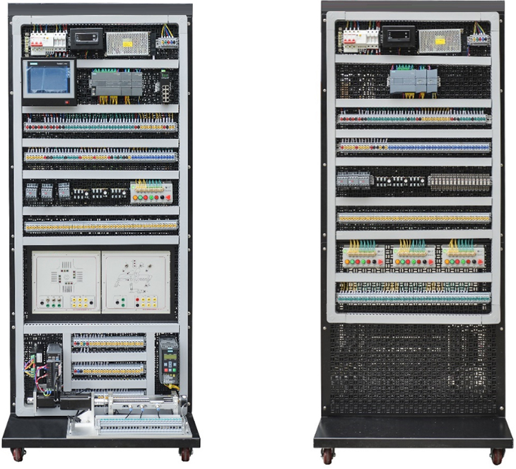 現(xiàn)代電氣控制系統(tǒng)安裝與調(diào)試實(shí)訓(xùn)考核裝置適合高等職業(yè)學(xué)校的機(jī)電設(shè)備安裝與維修、機(jī)電技術(shù)應(yīng)用、電氣運(yùn)行與控制、電氣技術(shù)應(yīng)用和電子電器應(yīng)用與維修等專業(yè),包括機(jī)械運(yùn)動(dòng)模塊,繼電模塊,儀表顯示模塊,按鈕單元,組態(tài)模塊,特種電機(jī)單元,通信單元等組成,通過(guò)相應(yīng)的掛板組件組成多種簡(jiǎn)單或復(fù)雜的電氣控制系統(tǒng)完成教學(xué)和實(shí)訓(xùn)。